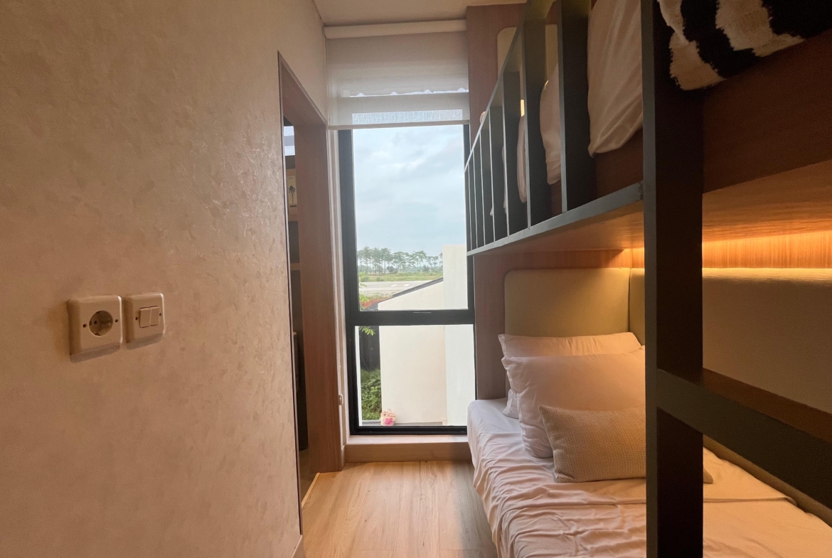 Dilengkapi 2 kamar tidur, hunian ini memberikan privasi sekaligus kenyamanan untuk pasangan dan anak. Ditambah backyard mungil yang dapat dijadikan ruang santai, area bermain, atau tempat beraktivitas outdoor yang sederhana namun menyenangkan.